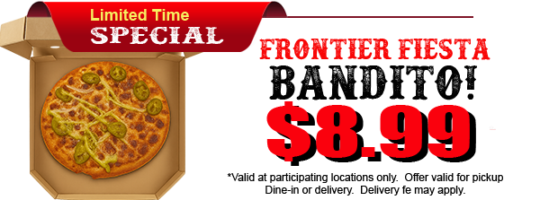 Our Frontier Fiesta Bean Sauce, Smoky 3-Cheese Blend, Spicy Chorizo, Crispy Bacon, Jalapenos, Onions and finished off with a dusting of Cotija Cheese & a drizzle our own homemade Avocado Crema.