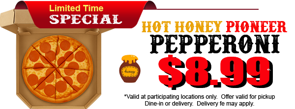 Our Tangy Homemade Traditional Red Sauce, Smoky 3-Cheese Blend, plenty of our Zesty Pepperoni drizzled in Hot Honey..
